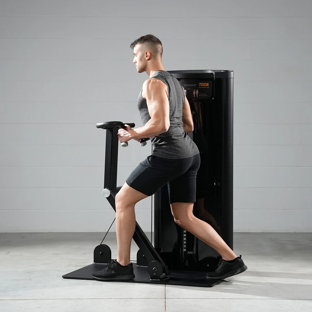 L’area StandUp è un concetto esclusivo TECA: non esiste nulla di simile nel mercato internazionale. La SUP02, insieme alle altre macchine della linea, crea un linguaggio visivo e funzionale che rende l’area immediatamente distinguibile da qualsiasi altra sala pesi.
